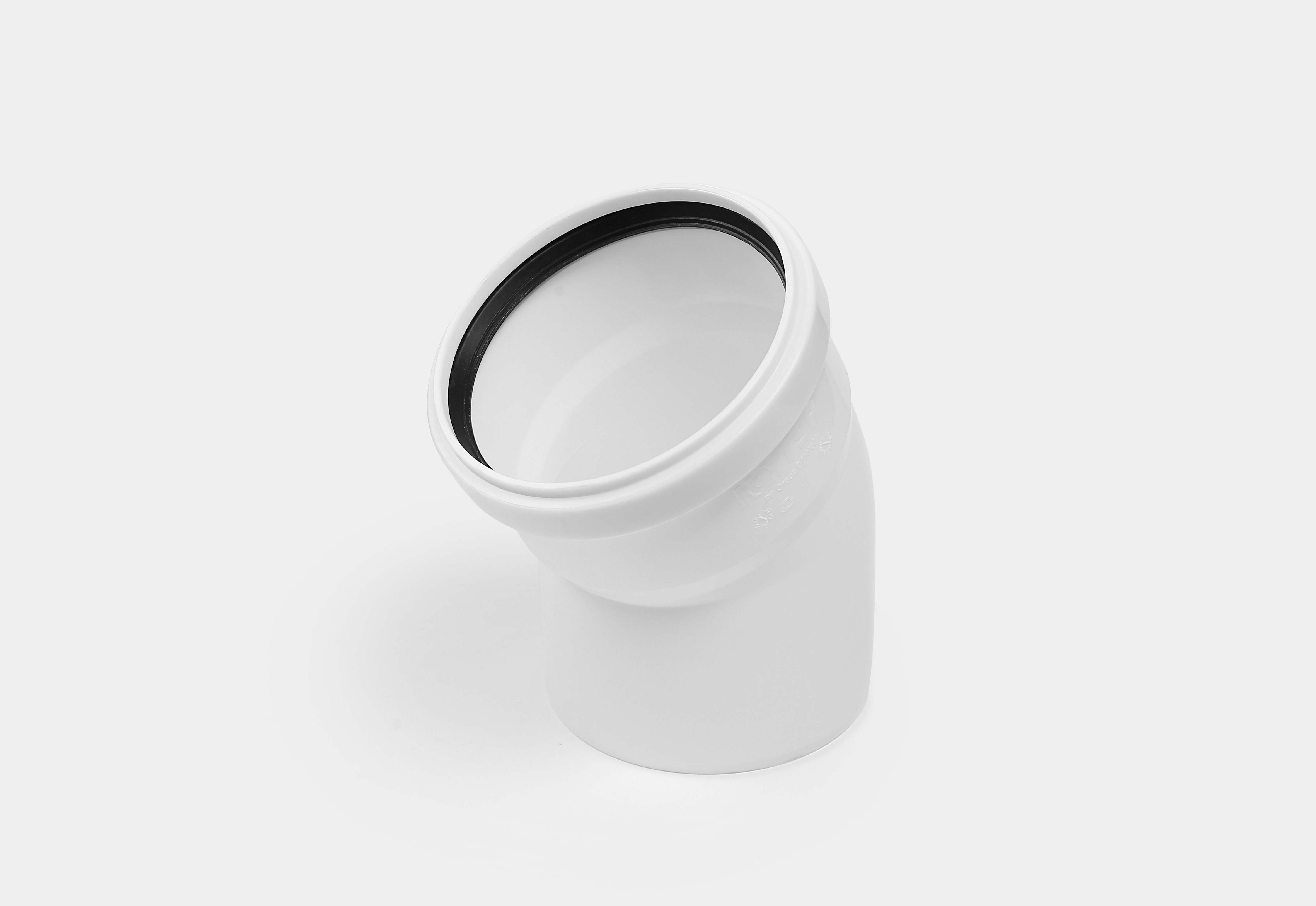Отвод канализационный 30° D110 УЮТ КОНТУР изготовлен из полипропилена и сополимеров пропилена с добавление минерального наполнителя