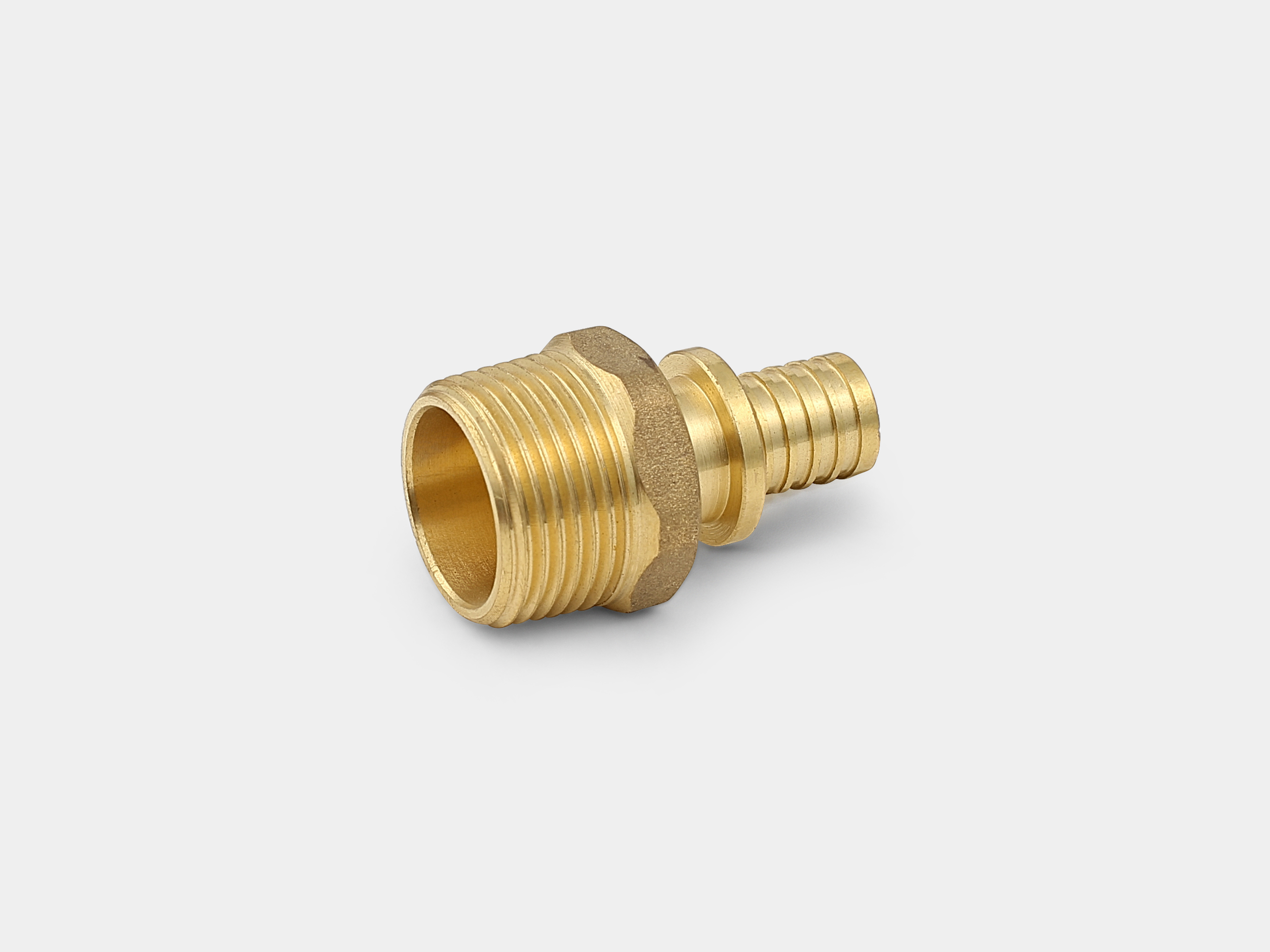Монтаж: вход – элемент с наружной резьбой оснащен гранями под гаечный ключ для удобства монтажа, выход – специальным инструментом выполняется запрессовка надвижной гильзы на предварительно расширенный конец трубы, надетый на штуцер фитинга. Соединение является неразборным